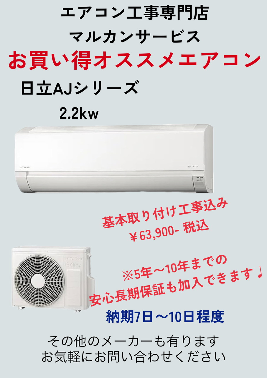 マルカンサービス購入エアコンは独自の2年間工事保証付きで安心です😌